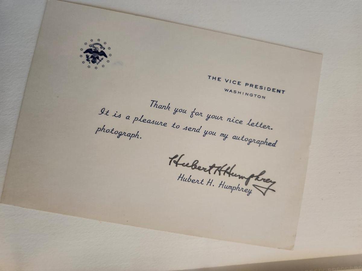 Autograph, Photograph and Note From Vice-President Hubert Humphry
