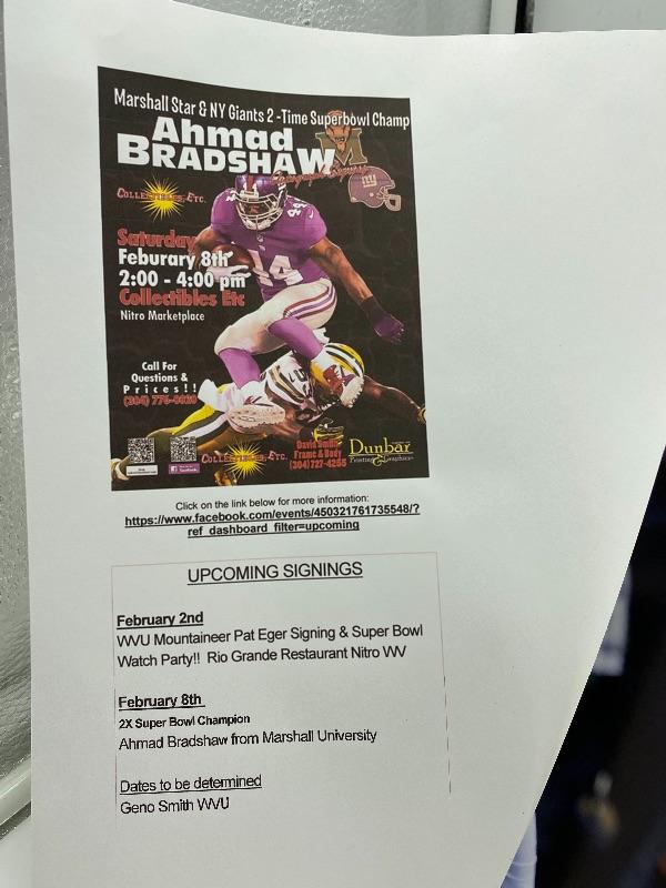 Autographed Ahmad Bradshaw Football 8x10 Photo. Autograph obtained at a Collectibles ETC. event on Saturday February 8th.