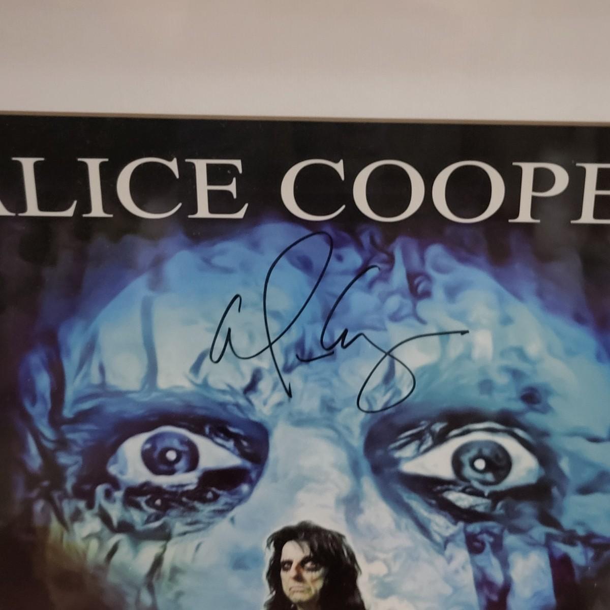 Alice Cooper limited print advertisement poster 2017, hand autographed, black frame with glass. Overall size is 17.25" x 25.5". Small flaw on top corner of frame . Shipping not available for this item.