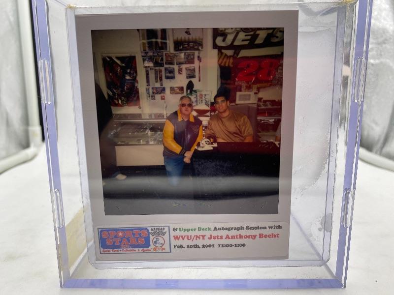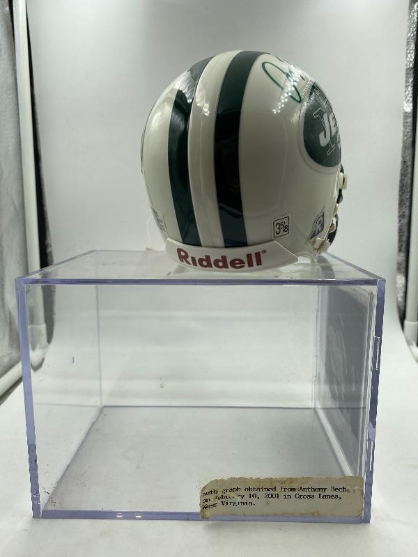 Autographed Anthony Becht 5 3/8 plastic Football Helmet. Autograph obtained from Anthony Becht on February 10th, 2001 in Cross Lanes, West Virginia.
