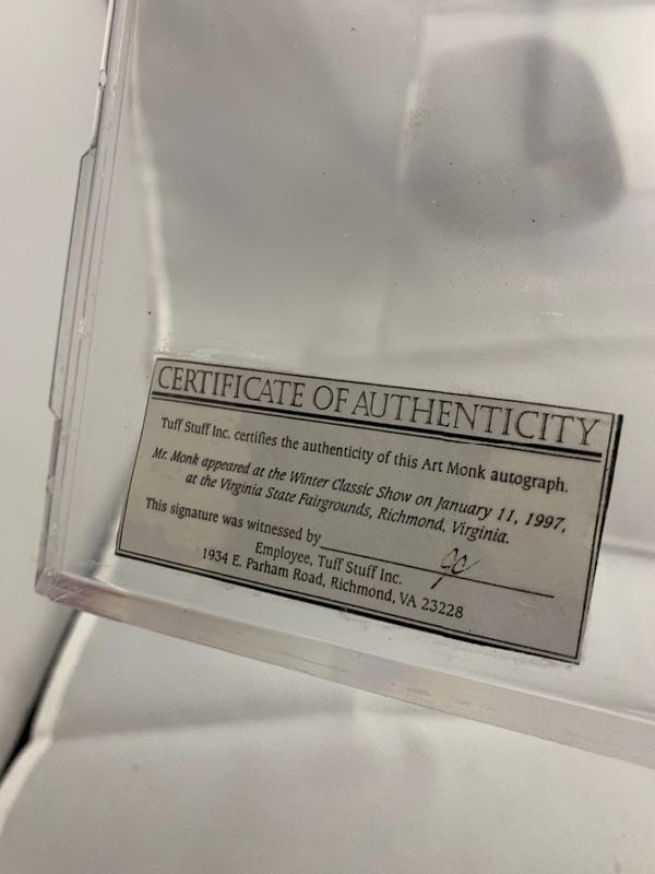 Autographed Art Monk Football. Autograph obtained at a Tuff Stuff autograph event on 1/11/97.