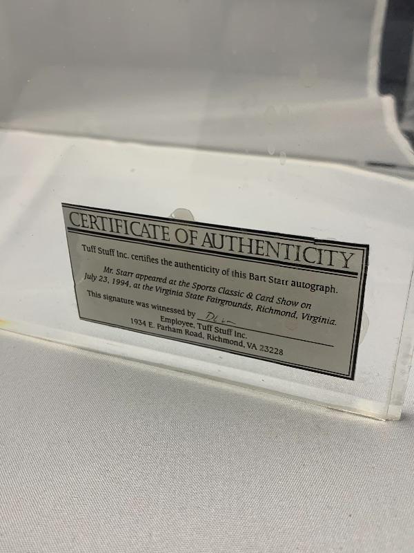 Autographed Bart Starr Football. Autograph obtained at a Tuff Stuff event in on 12/11/94.