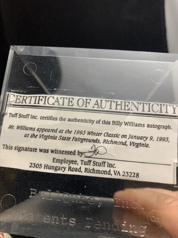 Authentic Autographed Billy Williams Baseball. Autograph obtained at a Tuff Stuff event on 1/9/93.