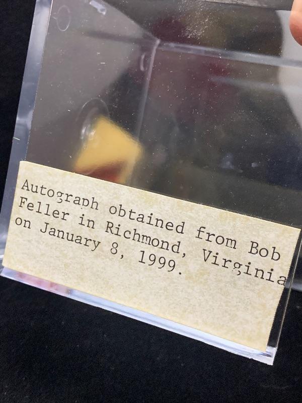 Authentic Autographed Bob Feller Baseball. Autograph obtained at an autograph event in Richmond VA on 1/8/1999.