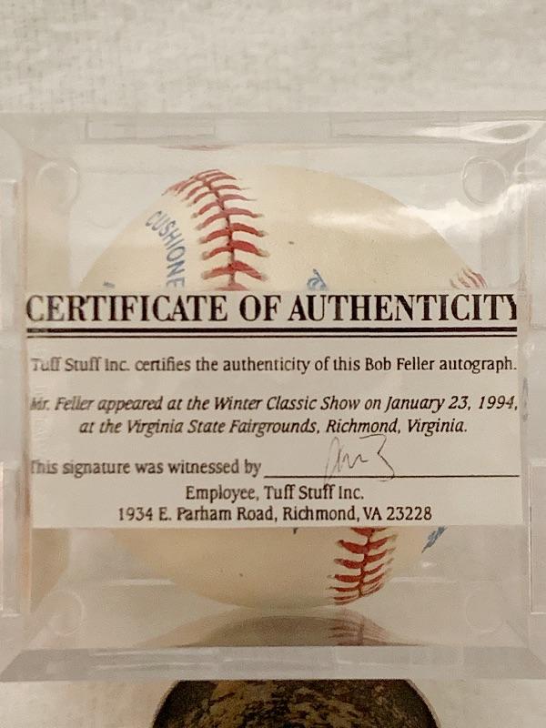 Authentic Autographed Bob Feller Baseball. Autograph obtained at a Tuff Stuff event on 1/23/94.