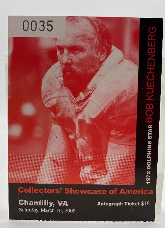 Autographed Bob Kuechenberg Football 8x10 Photo. Autograph obtained at a Collectors Showcase of America event in Chantilly, VA on Saturday, March 15, 2008.