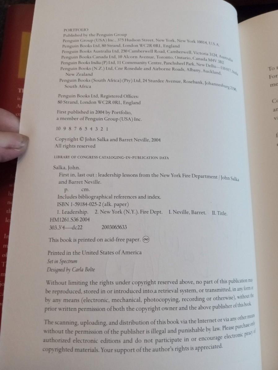 FIRST IN, LAST OUT AUTOGRAPHED COPY