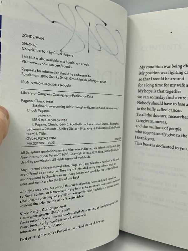 Autographed book Chuck Pagano “Sidelined” with COA.