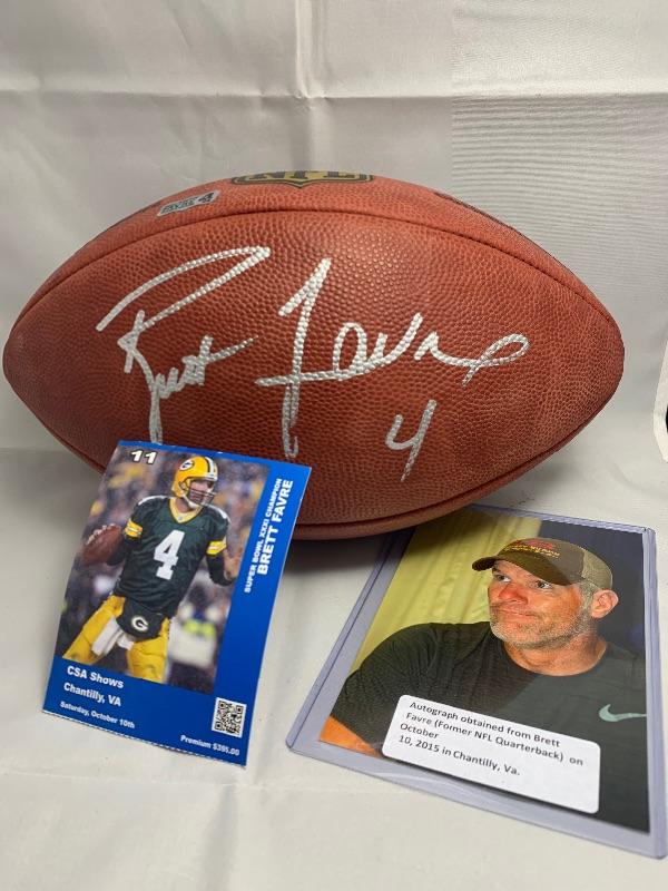 Autographed Brett Farve Football. Autograph obtained at a CSA autograph event on 10/10/2015.