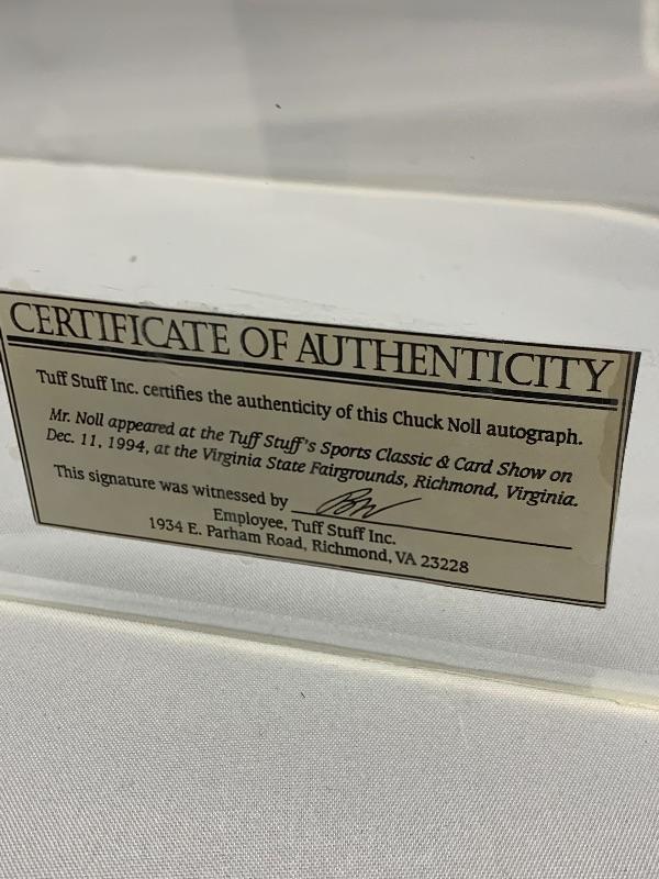 Autographed Chuck Noll Football. Autograph obtained at a Tuff Stuff event on 12/11/94.