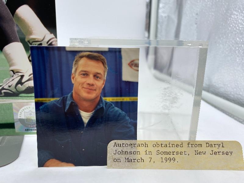 Autographed Daryl Johnson Football 8x10 Photo. Autograph obtained from Daryl Johnson in Somerset, New Jersey on March 7, 1999.