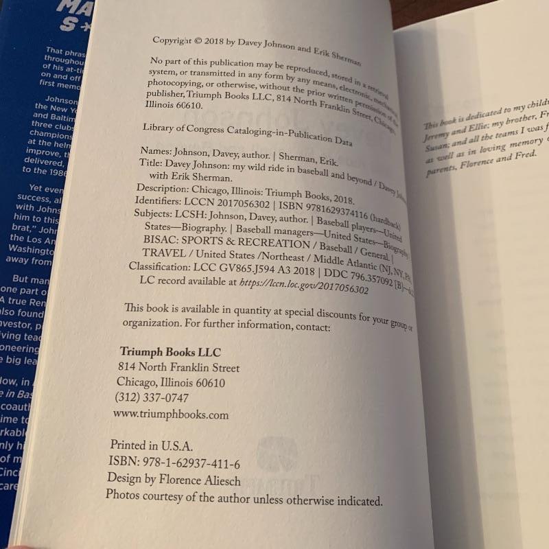 Autographed Davey Johnson “My Wild Ride in Baseball & Beyond” Book with Premiere Collectibles COA.