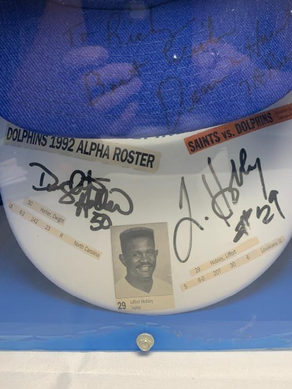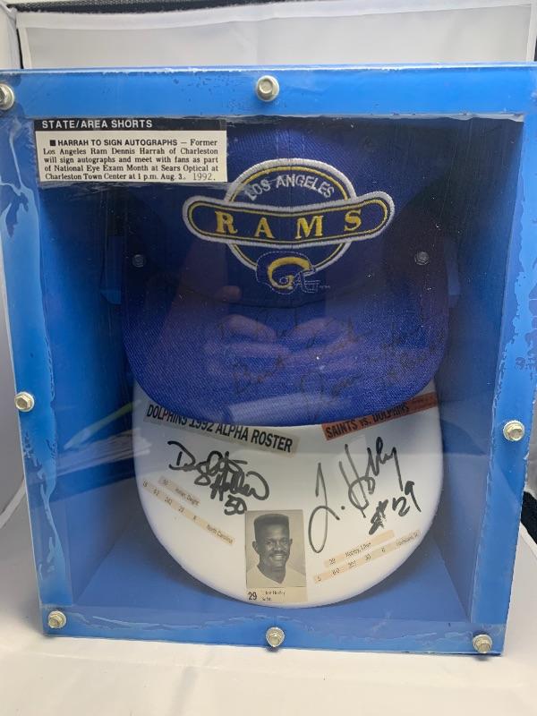 Autographed Dennis Harrah Ball Call and Dwight Hollier & Liffort Hobley on a Visor.