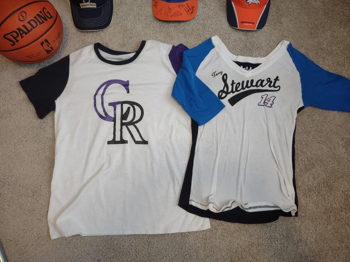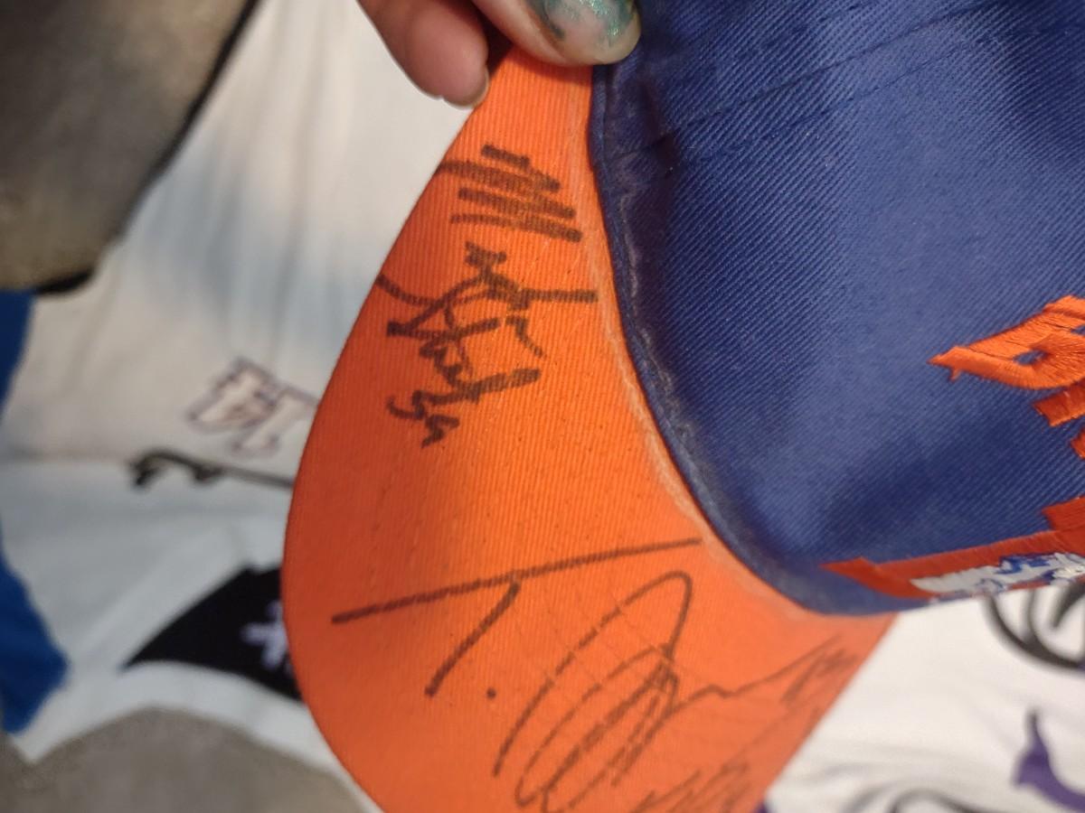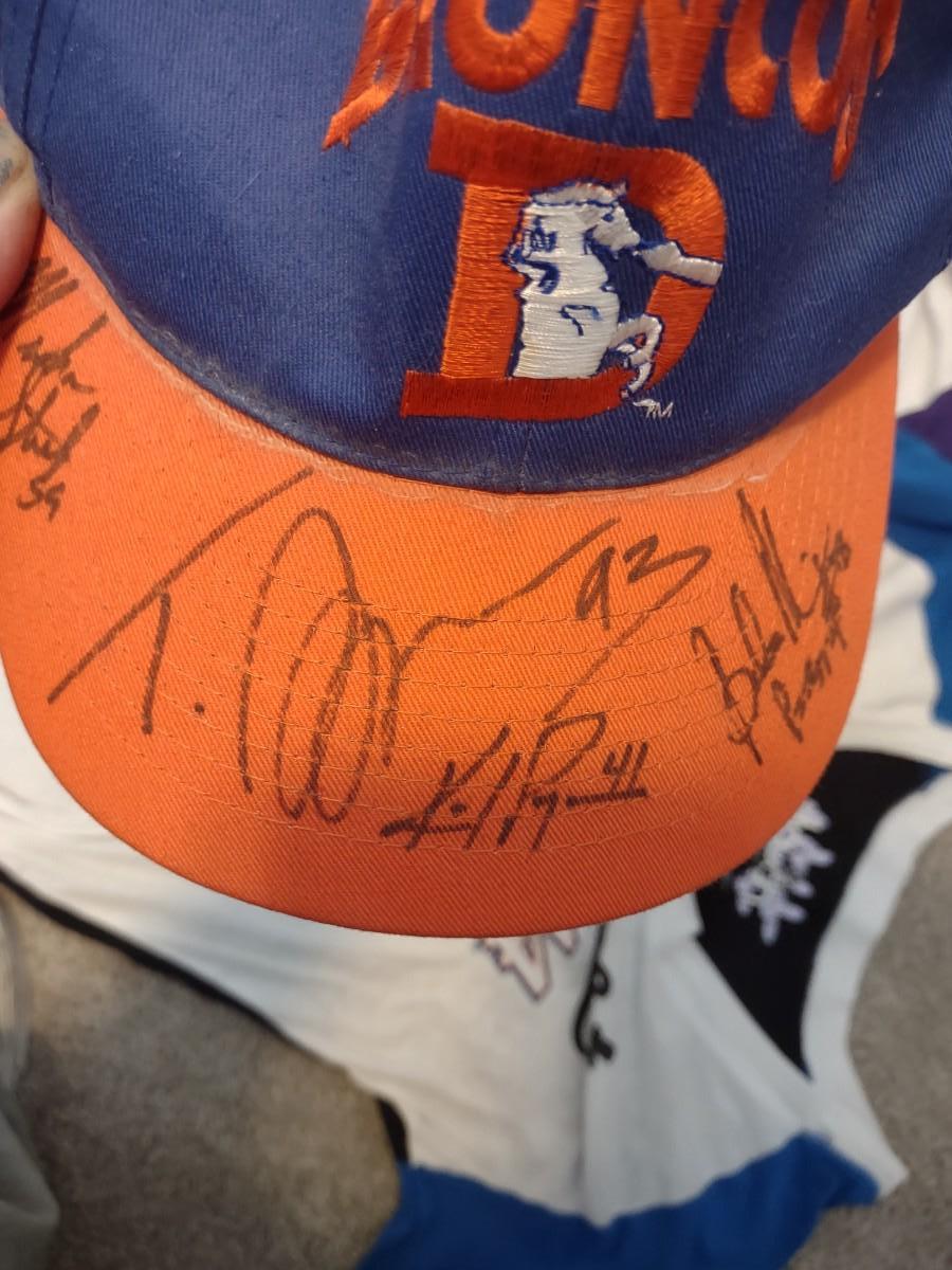 AUTOGRAPHED DENVER BRONCOS HAT, VISORS, BASKETBALL AND SPORT T-SHIRTS