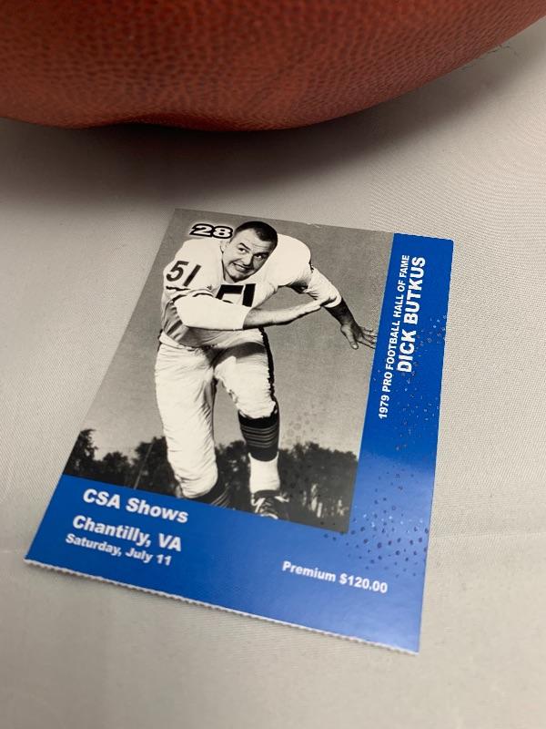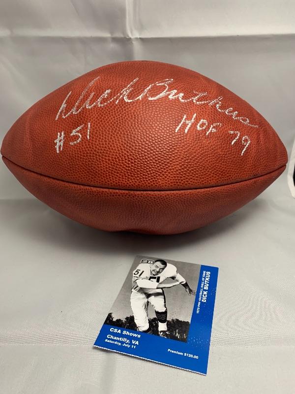 Autographed Dick Butkus Football. Autograph obtained at a CSA autograph event on 7/11/?.