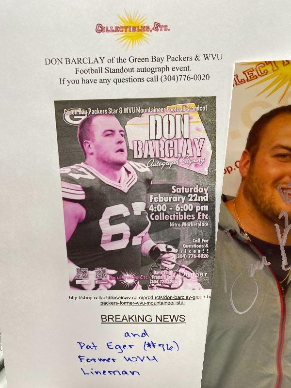 Autographed Don Barclay and Pat Eger Football 8x10 Photo. Autograph obtained at a Collectibles ETC. event on Saturday February 22, 2014.