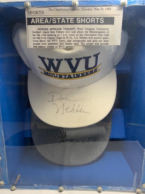 Autographed Don Nehlen Ball Caps. Autograph obtained at the Mountaineer Fan Club netting at Charleston Elks Club on 5/26/92.