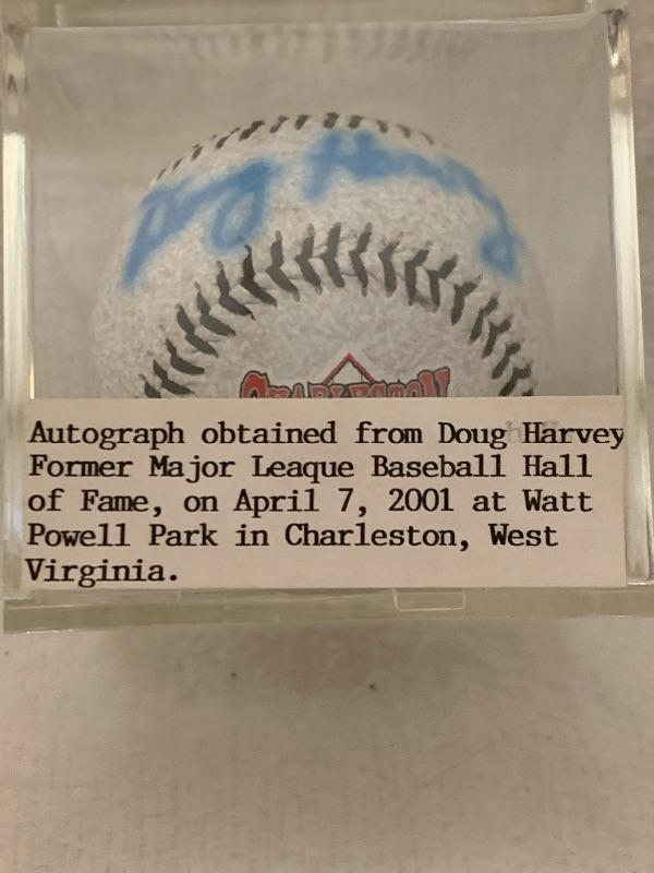 Autographed Doug Harvey Baseball. Autograph obtained at a Powell Park in Charleston WV on 4/7/2001.