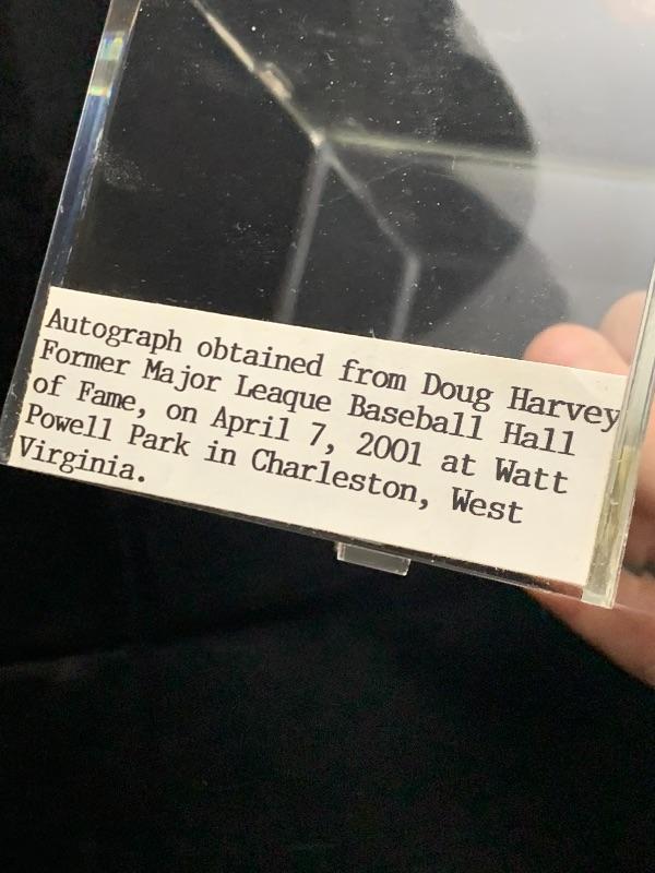 Autographed Doug Harvey Baseball. Autograph obtained at a Powell Park in Charleston WV on 4/7/2001.