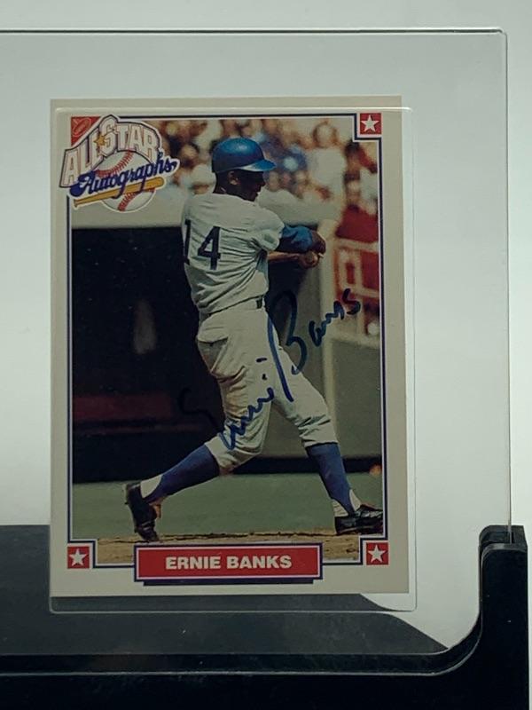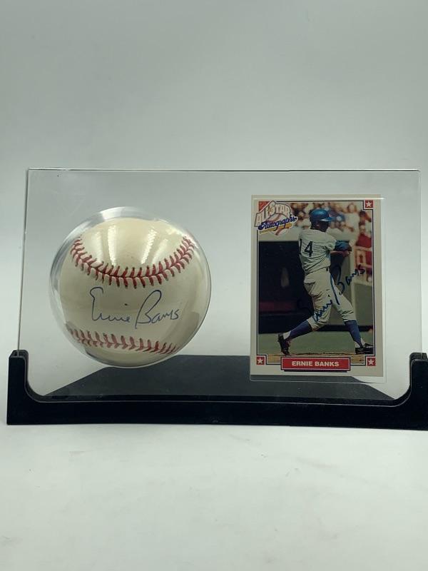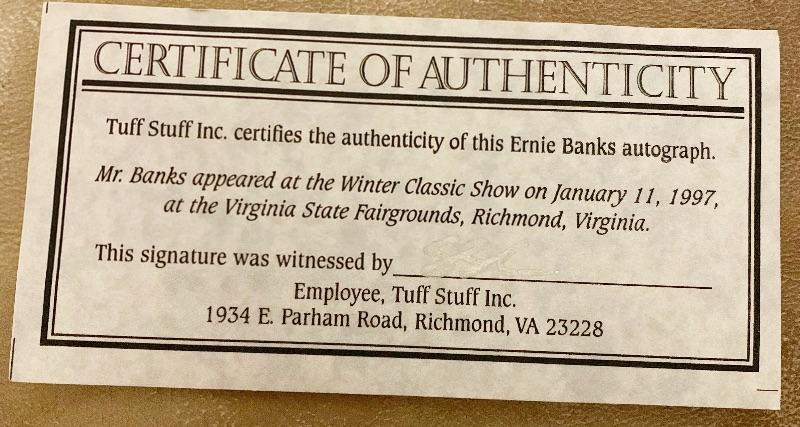 Autographed Ernie Banks Baseball. Autograph obtained on the ball at a Tuff Stuff event on 1/11/1997.