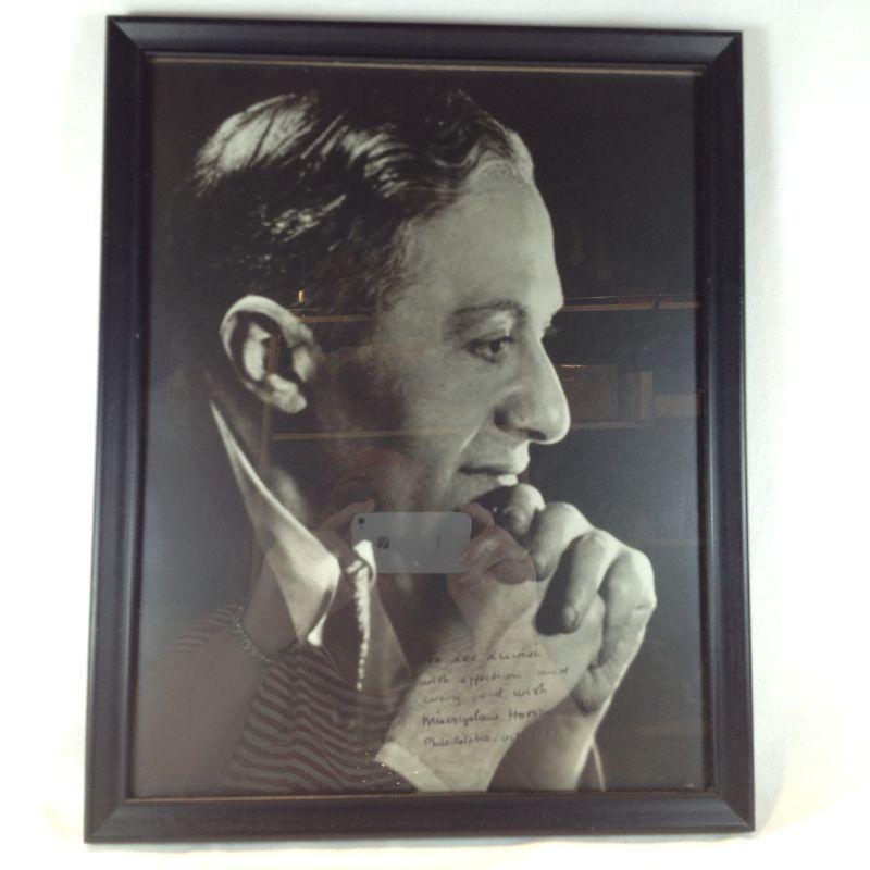 Autographed Framed Photo of Meiczyslaw Horszowki. The photo is inscribed to Lee Luvisi and signed by M. Horszowki - a world renowned Polish-American Pianist. Who lived from 6-23-1892 to 5-22-1993. Signed in 1957. It measures 15-inches tall X 12-inches wide. Note: Lee Luvisi, who lives in Louisville is another internationally acclaimed concert pianist, Note: Will ship WITHOUT Glass.