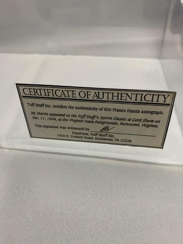 Autographed Franco Harris Football. Autograph obtained at a Tuff Stuff event on 12/11/94.