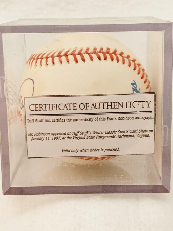 Authentic Autographed Frank Robinson Baseball. Autograph obtained at a Tuff Stuff event on 1/11/1997.