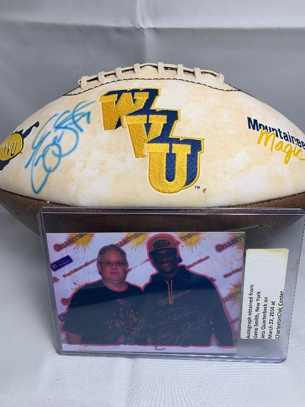 Autographed Geno Smith Football. Autograph obtained at an event at the Charleston Civic Center on 3/22/2014.