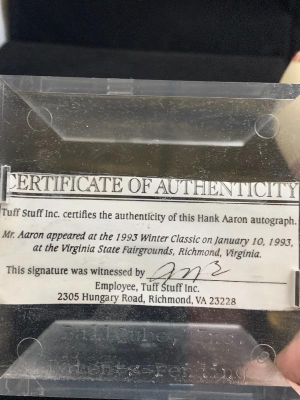 Authentic Autographed Hank Aaron Baseball. Autographed obtained at a Tuff Stuff event the weekend of 1/10/93.