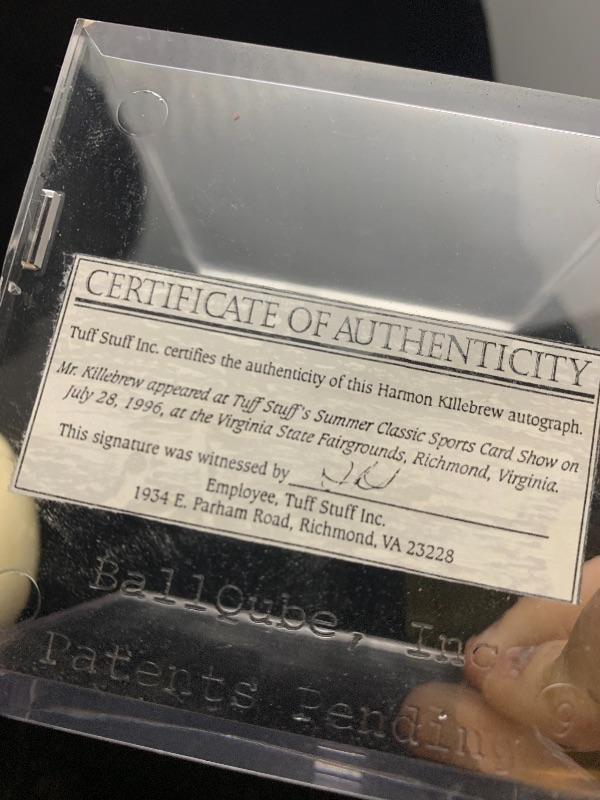 Authentic Autographed Harmon Killebrew Baseball. Autograph obtained at a Tuff Stuff event on 7/28/1996.