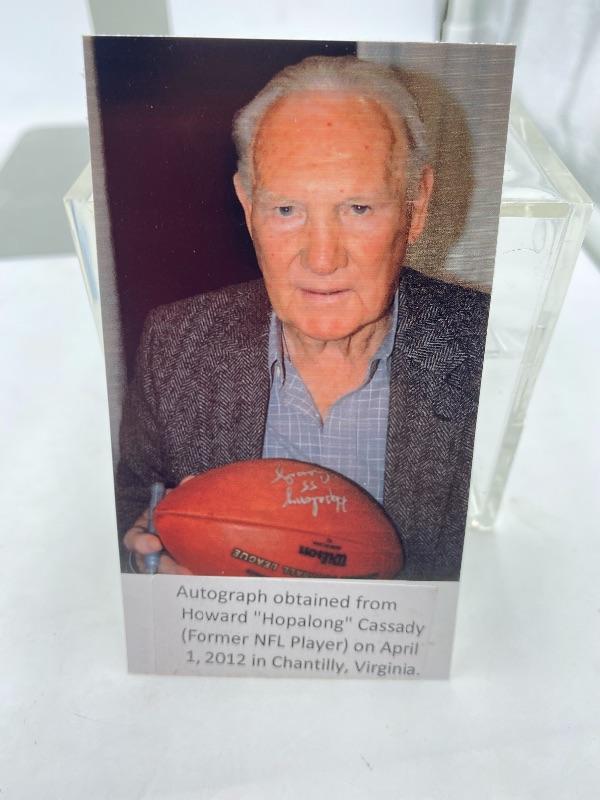 Autographed Howard “Hopalong” Cassady Football 8x10 Photo. Autograph obtained at a Collectors’ Showcase of America event in Chantilly, VA on Sunday April 1, 2012.