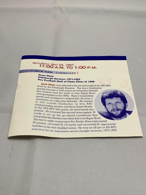 Autographed Jack Ham Football. Autograph obtained at a Hall of Fame Autograph event on 5/24/1997.