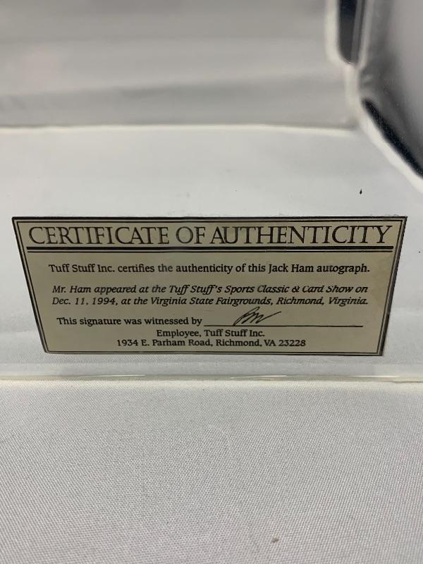 Autographed Jack Ham Football. Autograph obtained at a Tuff Stuff event on 12/11/94.
