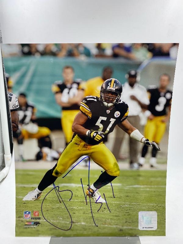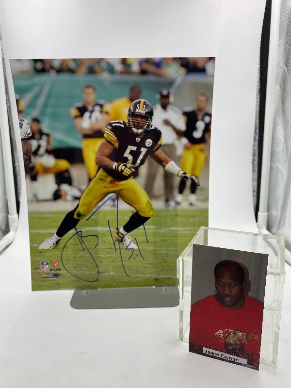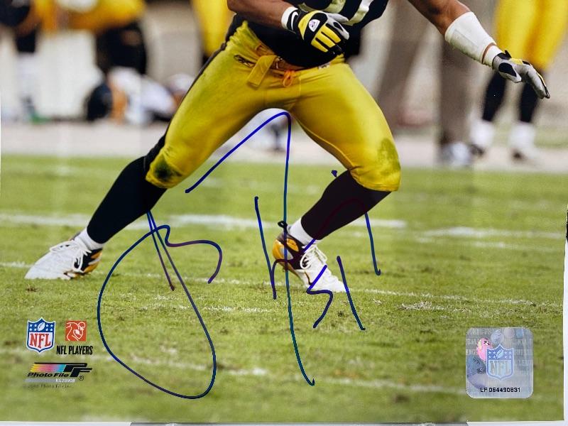 Autographed James Farrior Football Photo.