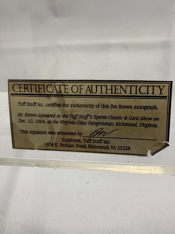 Autographed Jim Brown Football. Autograph obtained at a Tuff Stuff event on 12/10/94.