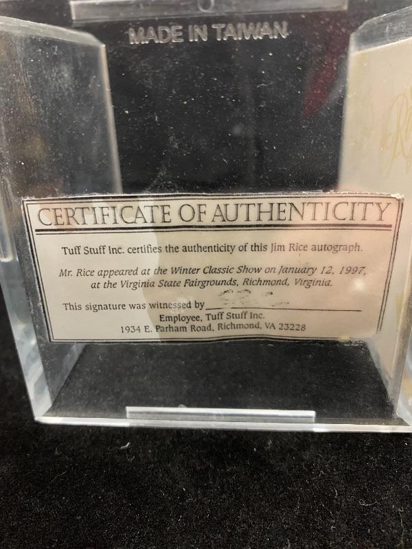 Authentic Autographed Jim Rice Baseball. Autograph obtained at a Tuff Stuff event on 1/12/1997 .