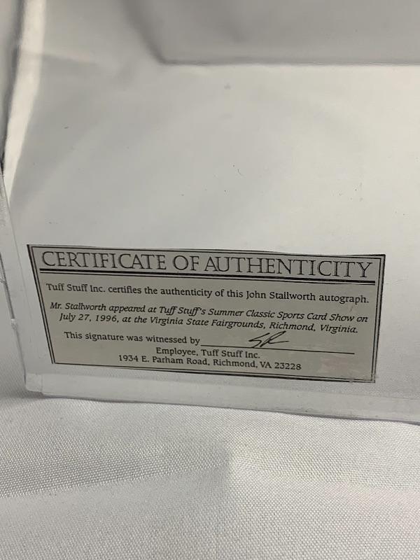 Autographed John Stallworth Football. Autograph obtained at a Tuff Stuff event on 7/27/96.