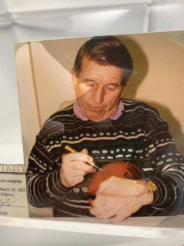 Autographed Johnny Unitas Football. Autograph obtained at a Tuff Stuff event on 1/10/1993.