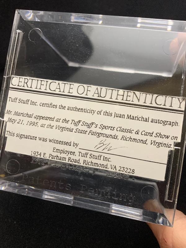 Authentic Autographed Juan Marichal Baseball. Autograph obtained at a Tuff Stuff event on 5/21/1995 .