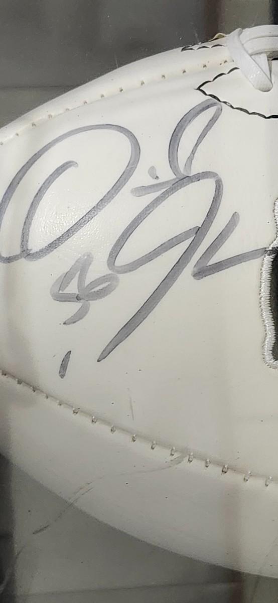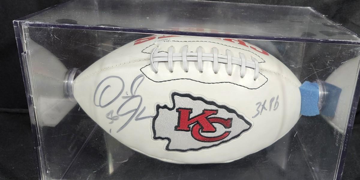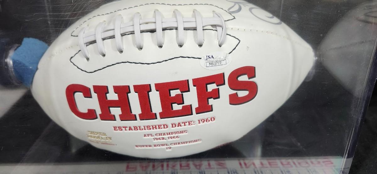 Autographed Kansas City Chiefs football, featuring Derrick Johnson's signature authenticity JSA