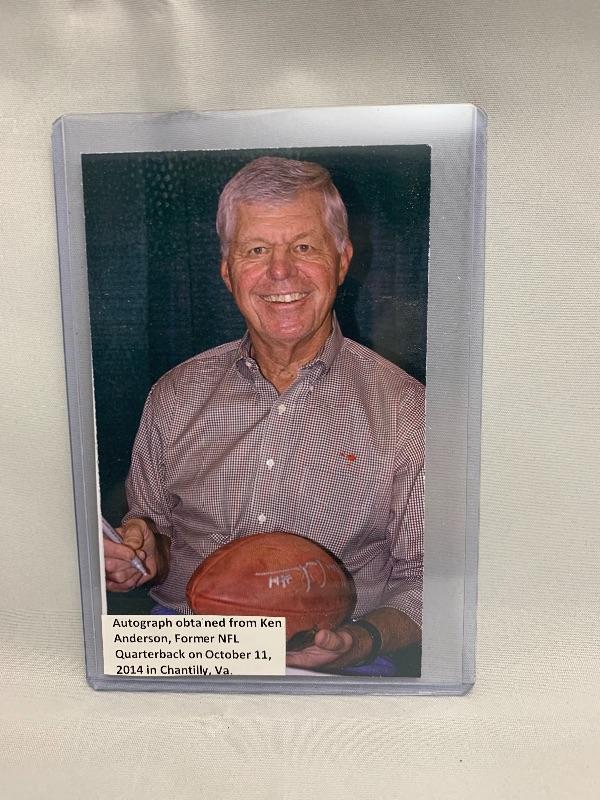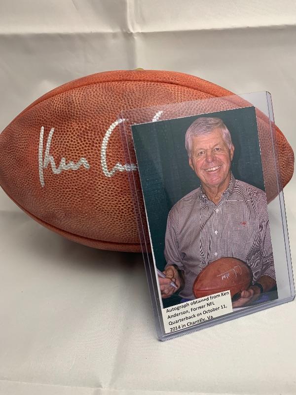 Autographed Ken Anderson Football. Autograph obtained at a CSA autograph event on 10/11/2014.