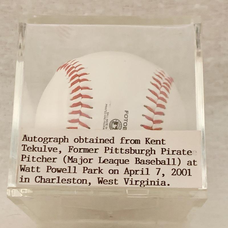Authentic Autographed Kent Tekulve Baseball. Autographed obtained at watt Powell Park in Charleston WV on 4/7/01.