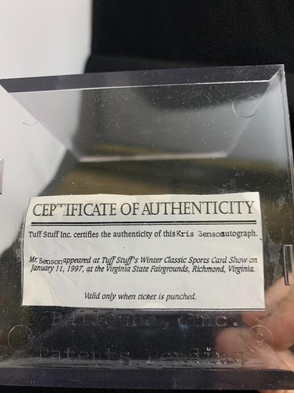 Authentic Autographed Kris Benson Baseball. Autographed obtained at a Tuff Stuff event on 1/11/97.