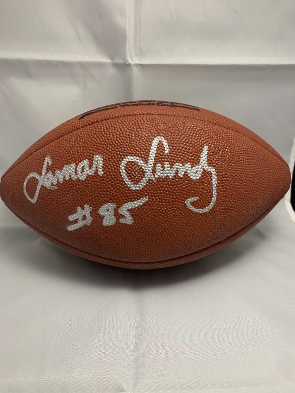 Autographed Lamar Lundy Football. Autograph obtained at a CSA Autograph event on 6/21/1997.