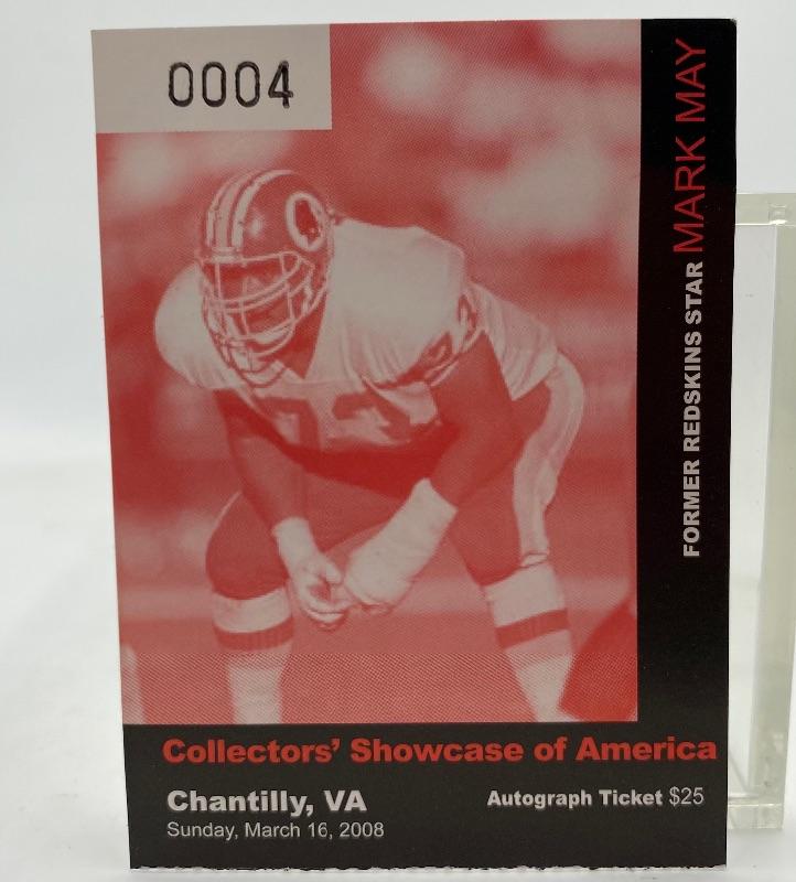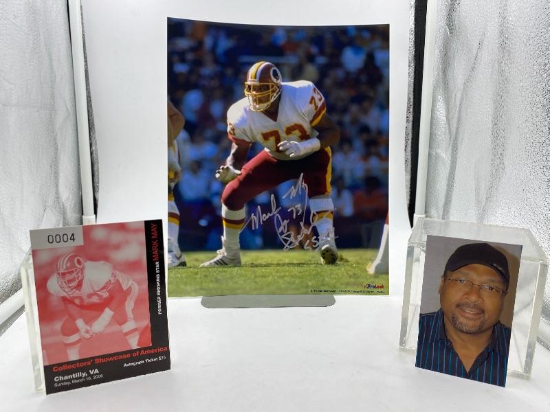 Autographed Mark May Football 8x10 Photo. Autograph obtained at a Collectors Showcase of America event in Chantilly, VA on SUNDAY, March 16, 2008.