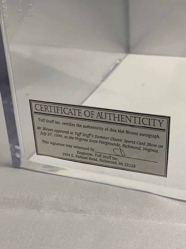 Autographed Mel Blount Football. Autograph obtained at a Tuff Stuff event on 7/27/1996.