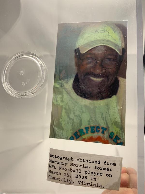Autographed Mercury Morris Football. Autograph obtained at a CSA autograph event on 3/15/08.