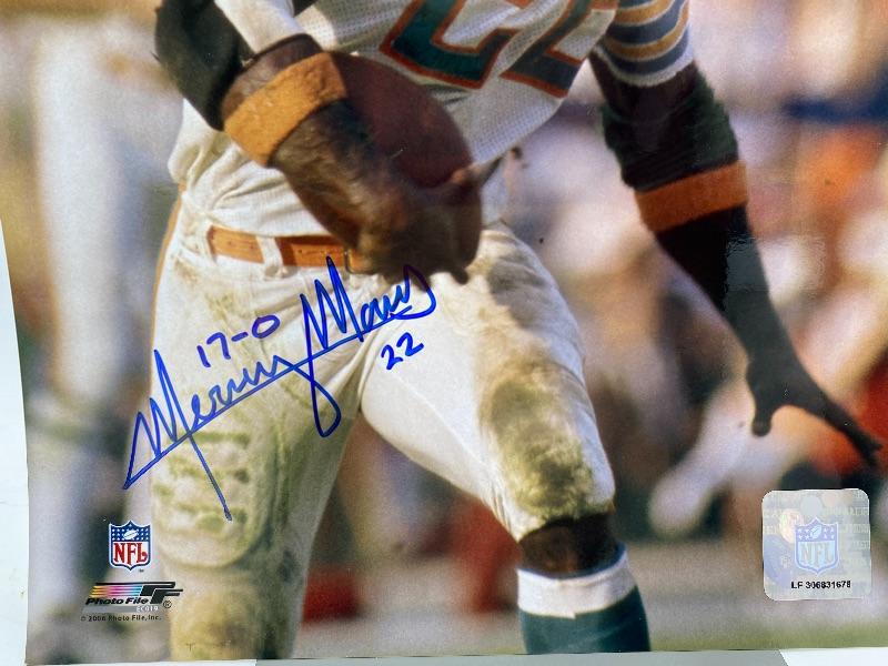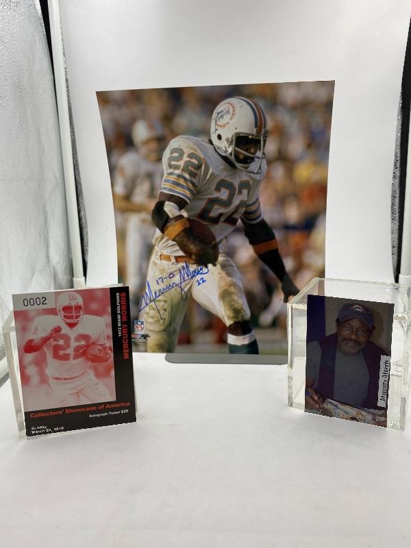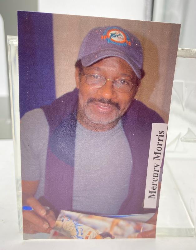Autographed Mercury Morris Football 8x10 Photo. Autograph obtained at a Collectors’ Showcase of America event on Sunday March 28, 2010.