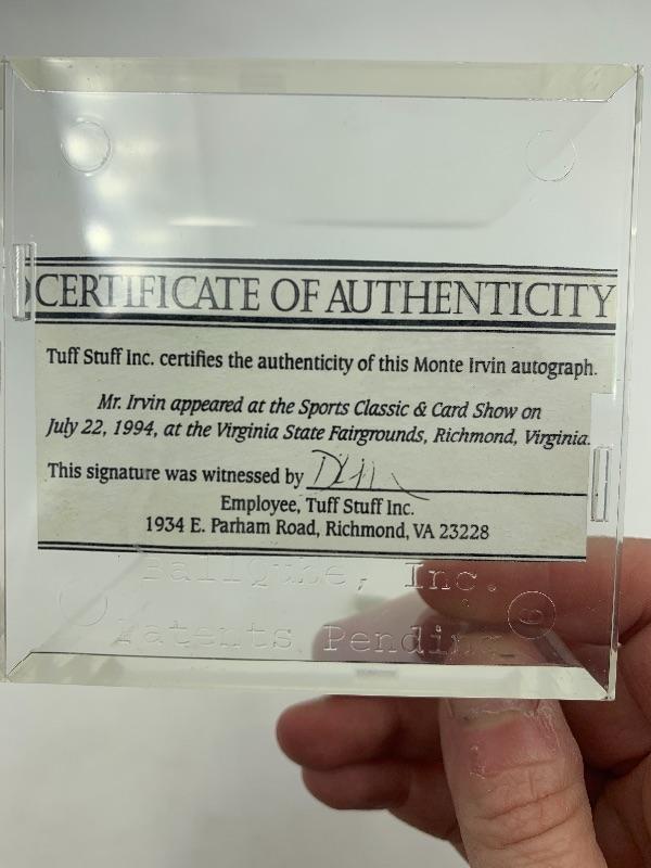 Autographed Monte Irvine Baseball. Autograph obtained at a Tuff Stuff event on 7/22/94.