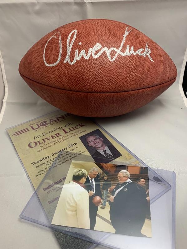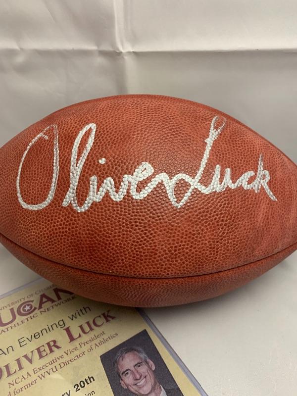 Autographed Oliver Luck Football. Autograph obtained at an event in the University of Charleston Rotundra I believe around 2010 but not sure.